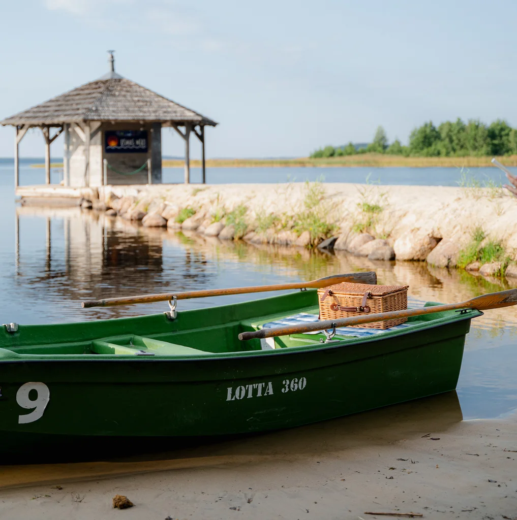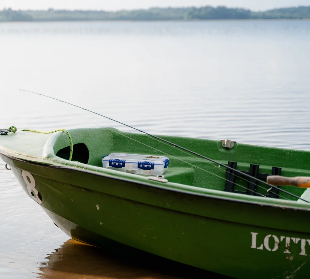Izbraucieniem pa ezeru, piedāvājam pilnībā aprīkotas airējamas laivas un laivas ar elektromotoru. Aprīkojumā ietilpst glābšanas vestes un enkuri.