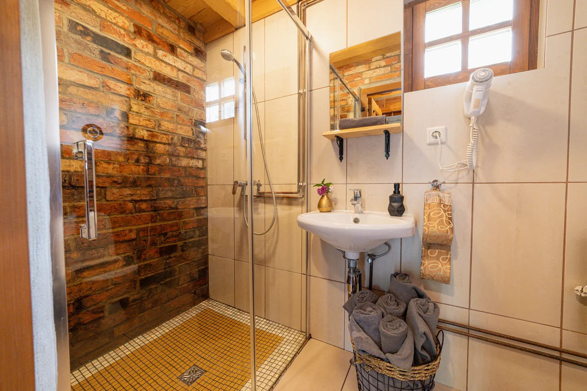 Viesu ērtībām pieejama privāta vannasistaba ar dušu, WC un fēnu.