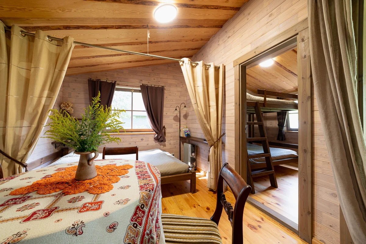 Namiņā ir divas guļamistabas. Vienā guļamistabā (viesistabas zonā) atrodas divguļamā gulta, savukārt otrā guļamistabā ir divstāvu gulta ar četrām guļvietām, kas nodrošina ērtu nakšņošanu visiem viesiem.