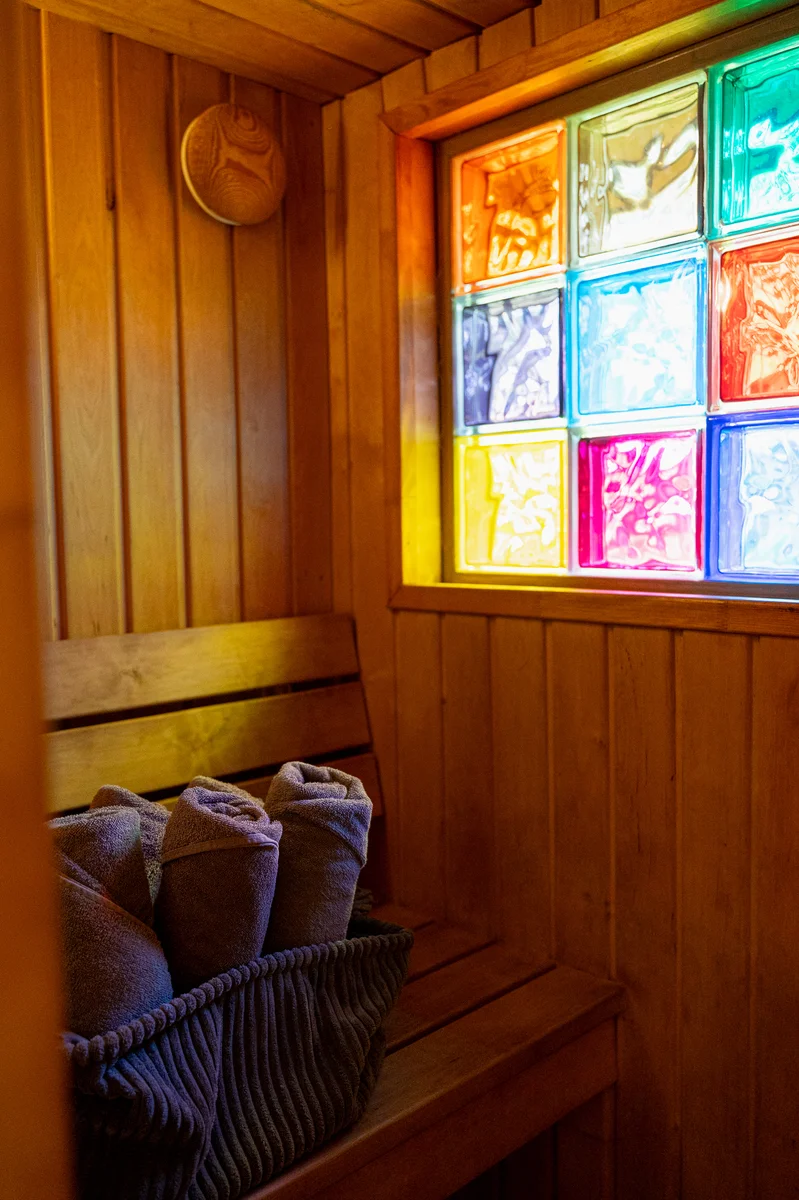 Īpašu relaksāciju nodrošina neliela privātā sauna, kur var sasildīties un atpūsties pēc aktīvi pavadītas dienas. Pie namiņa atrodas terase ar galdu un soliem, kur var baudīt maltītes svaigā gaisā. Viesiem pieejams arī grils. Papildus iespējams rezervēt baļļu (par papildus samaksu).