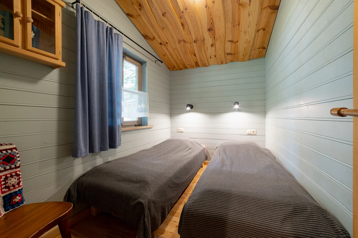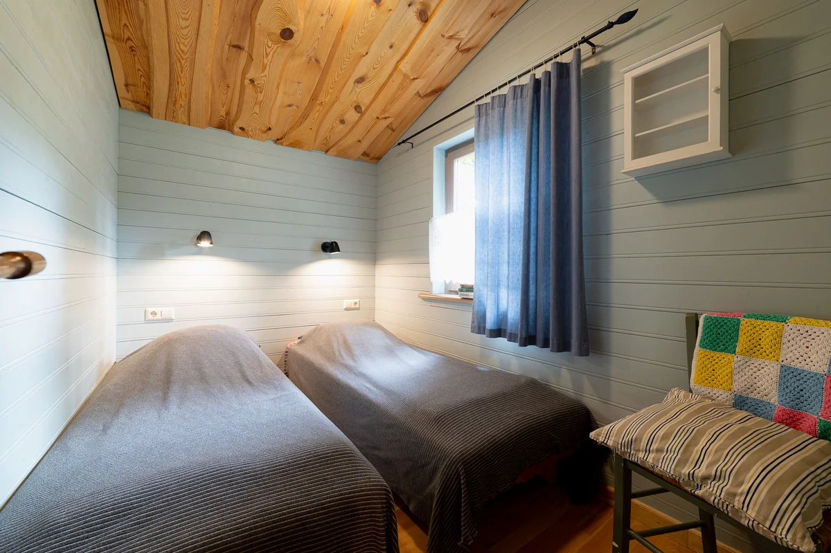 Namiņā ir divas guļamistabas, katrā no tām izvietotas divas vienvietīgās gultas, nodrošinot ērtu nakšņošanu visiem viesiem.