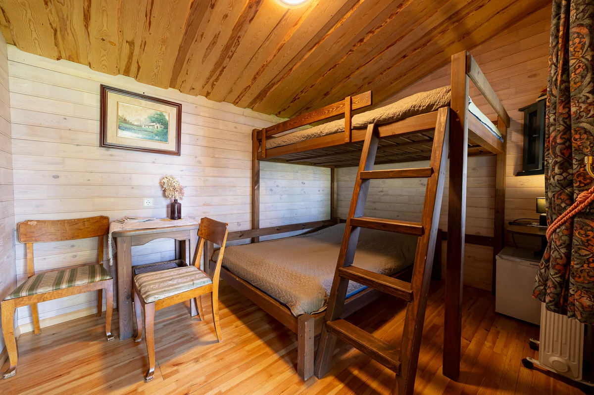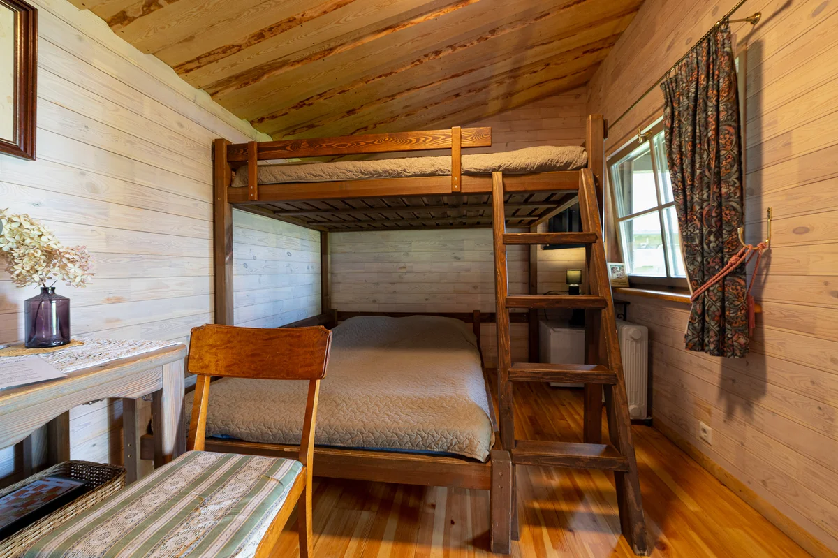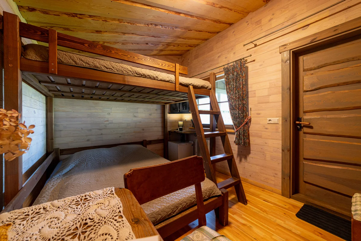 Namiņā atrodas divstāvu gulta ar četrām guļvietām, kas nodrošina ērtu nakšņošanu. Viesu ērtībām pieejama privāta vannasistaba ar dušu un WC, kā arī ledusskapis, tējkanna un nepieciešamais minimālais aprīkojums ikdienas lietošanai.