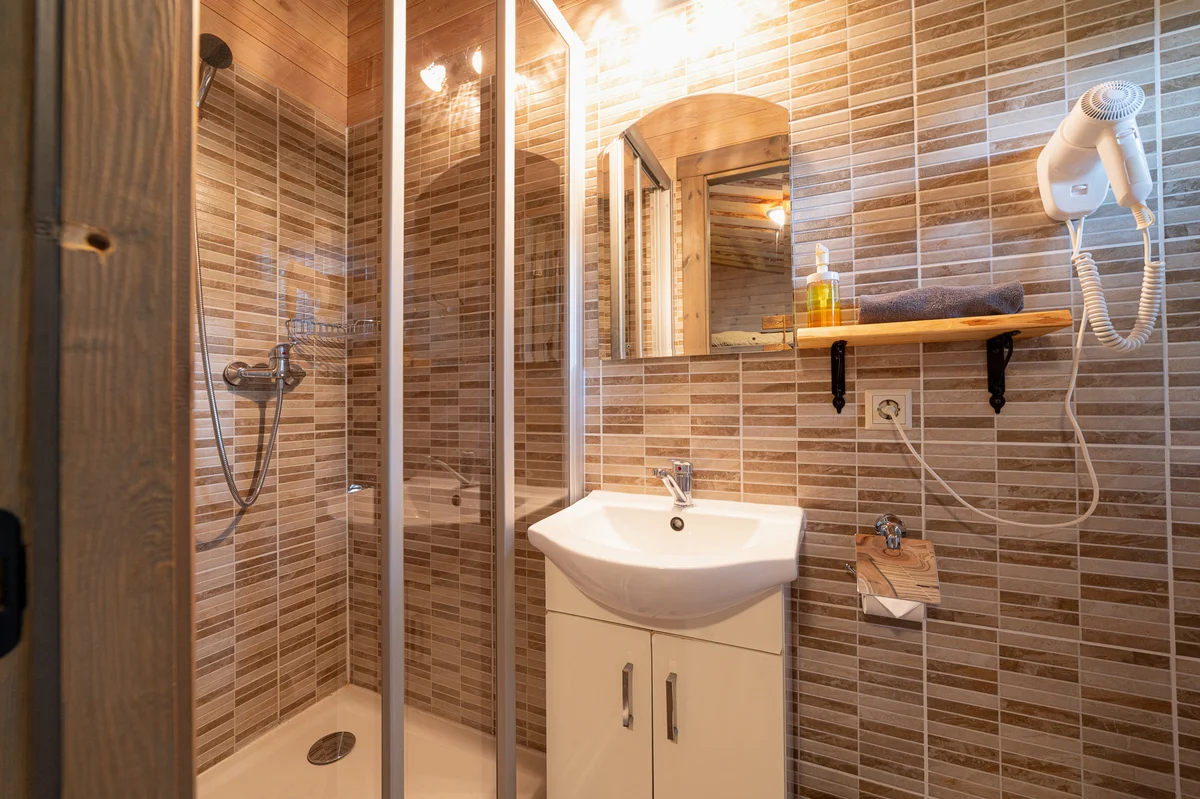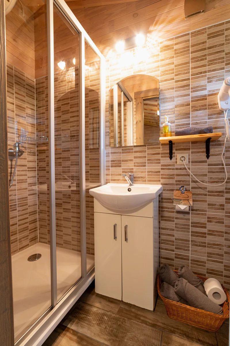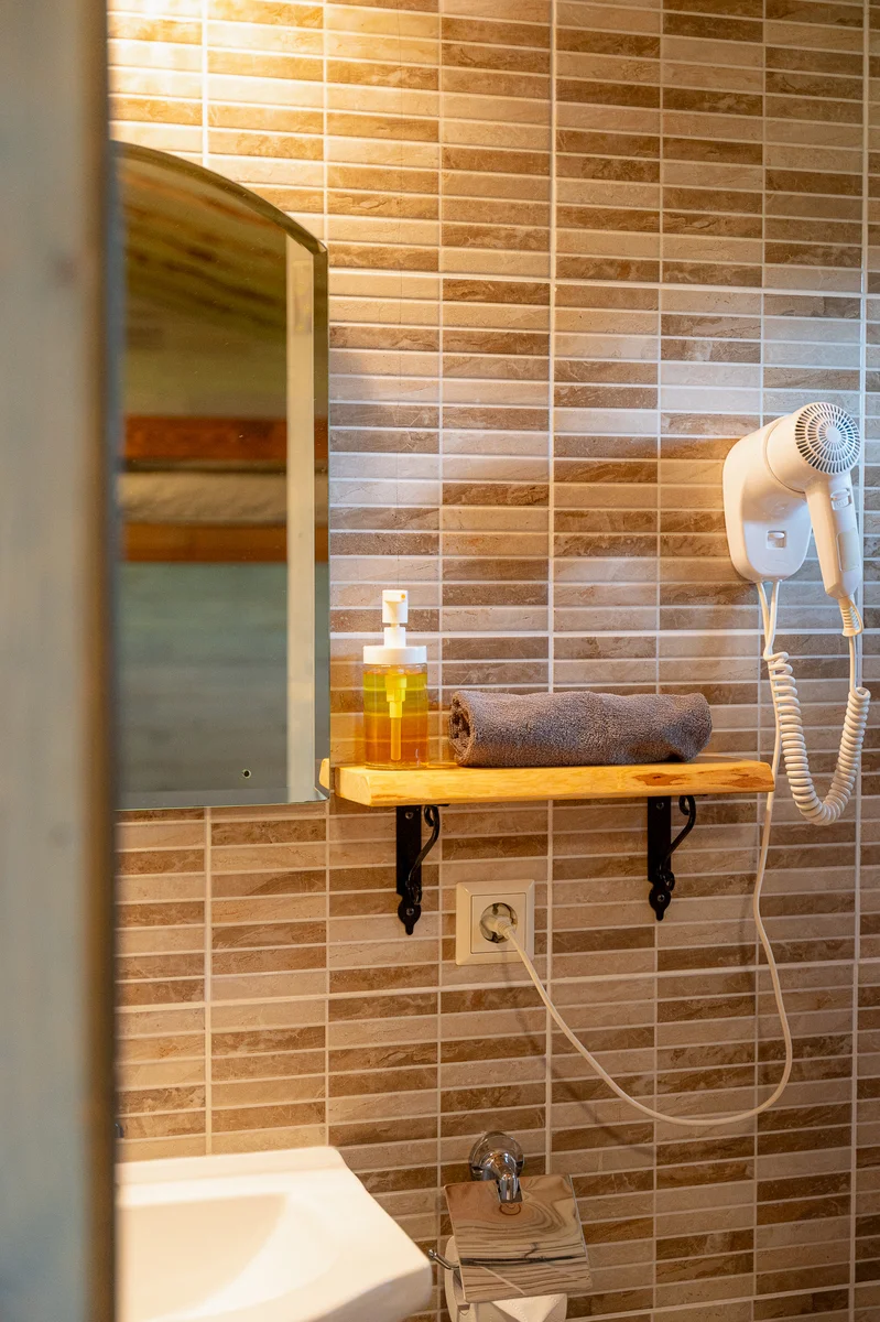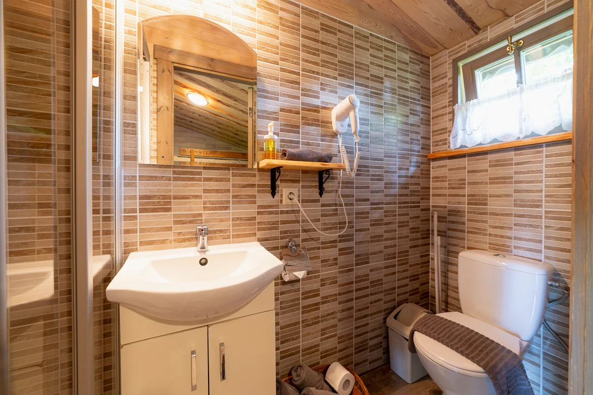 Namiņā atrodas divstāvu gulta ar četrām guļvietām, kas nodrošina ērtu nakšņošanu. Viesu ērtībām pieejama privāta vannasistaba ar dušu un WC, kā arī ledusskapis, tējkanna un nepieciešamais minimālais aprīkojums ikdienas lietošanai.