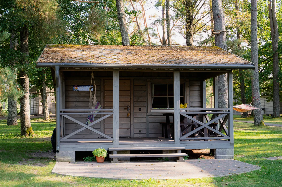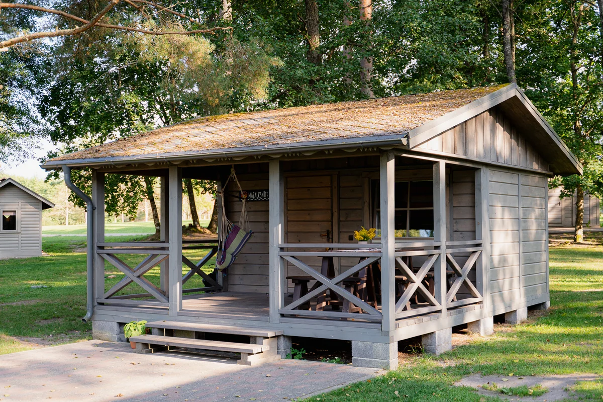 Pie namiņa ir plaša terase, kur izvietots galds un soli, kā arī šūpuļtīkli, kuros var baudīt mierpilnu atpūtu svaigā gaisā. Viesiem pieejams arī grils, lai varētu pagatavot gardas maltītes ārā.