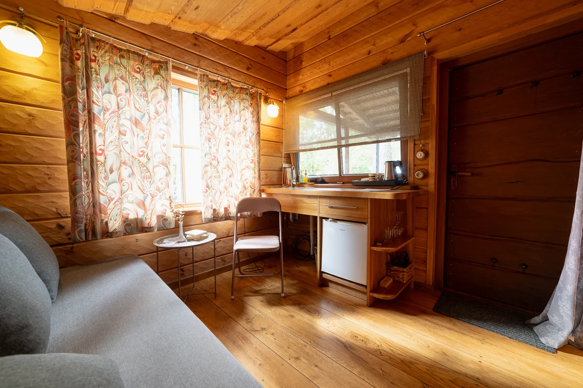 Divvietīgs namiņš ar pirti “Idille” ir pieejama izvēlētajos datumos.