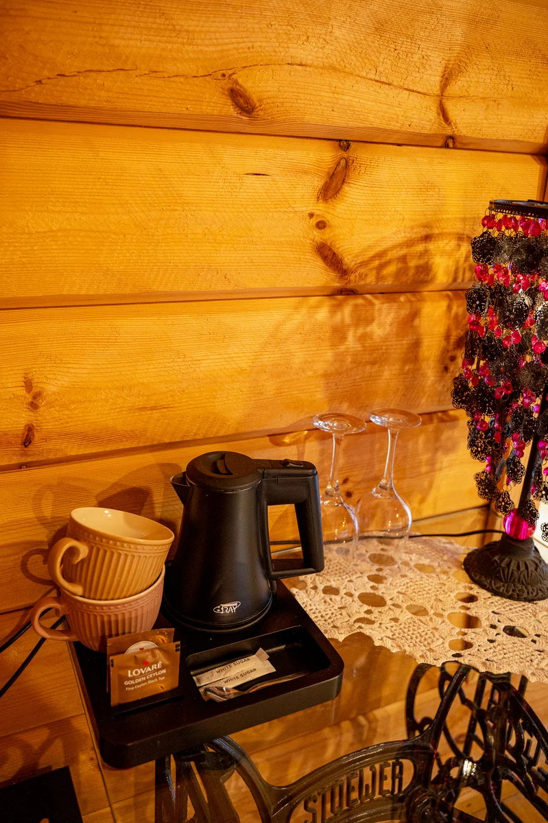 Numuriņā atrodas liela divguļamā gulta, kā arī viss nepieciešamais ērtai uzturēšanās – ledusskapis, galds, krēsli un tējkanna. Viesu ērtībām pieejama privāta vannasistaba ar dušu un WC, kā arī fēns.